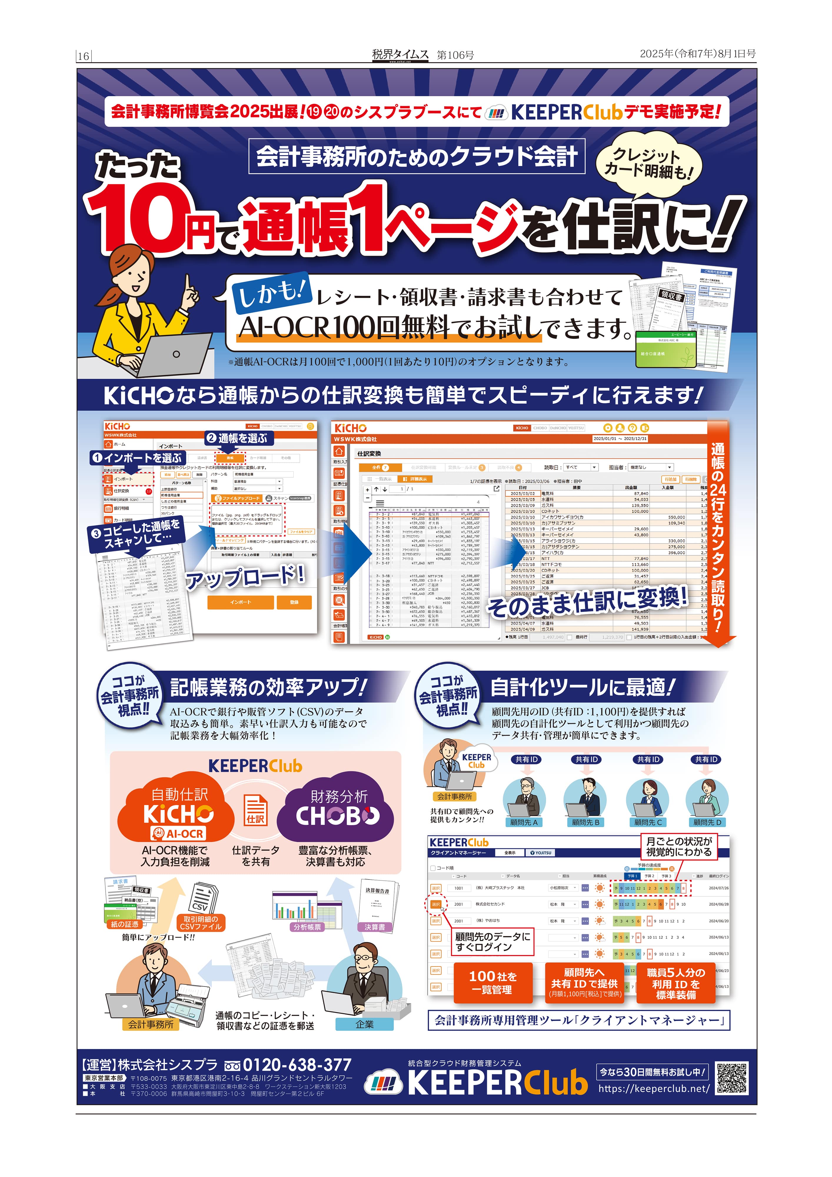 2025年8月1日号掲載 税界タイムス第106号『たった10円で通帳1ページを仕訳に!』